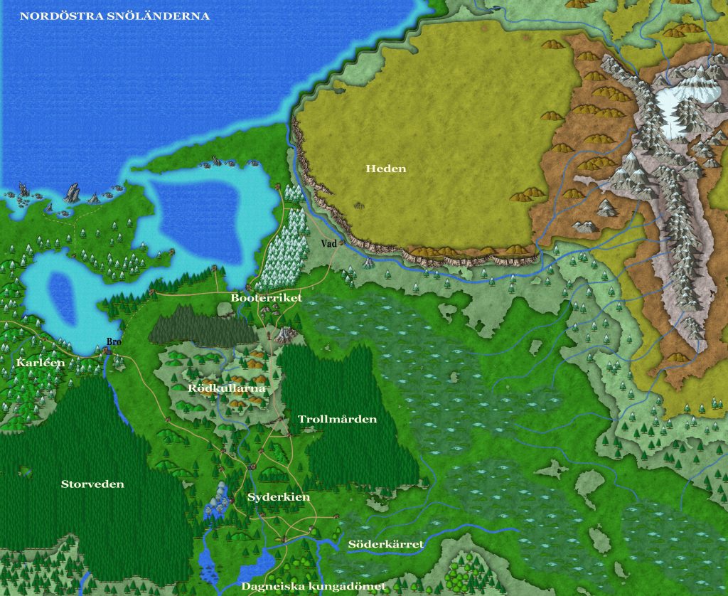 Snöländerna befolkas av åtta folkslag. De nomadiserade algoterna trotsar kylan uppe på Heden. Deras grannar booterna har organiserat sig som ett stamförbund – en idé som de gärna sprider vidare. Syderkerna är upptagna med att försvara sig mot yttre hot. Västerkerna är upptagna med inre strider. Karléerna är kända för sina hantverkare och sina köpmän. Deras handel binder samman de norra breddgraderna. Fingalerna förbannar sitt öde som trälar. Katjarerna böjer sig för inga. Dagnéerna, slutligen, smider planer på ett imperium.